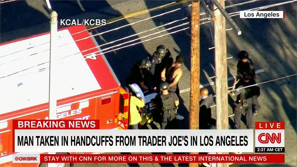 美國加州洛杉磯北部,疑似發生超市人質挾持事件,一名嫌犯先與警方爆發槍戰,最後闖入一間連鎖超市後,遭到大批警力包圍,而隨著嫌犯剛剛被上銬帶走後,歷經幾個小時的警匪對峙總算落幕,不過也造成一名女子在超市內遭槍擊死亡。