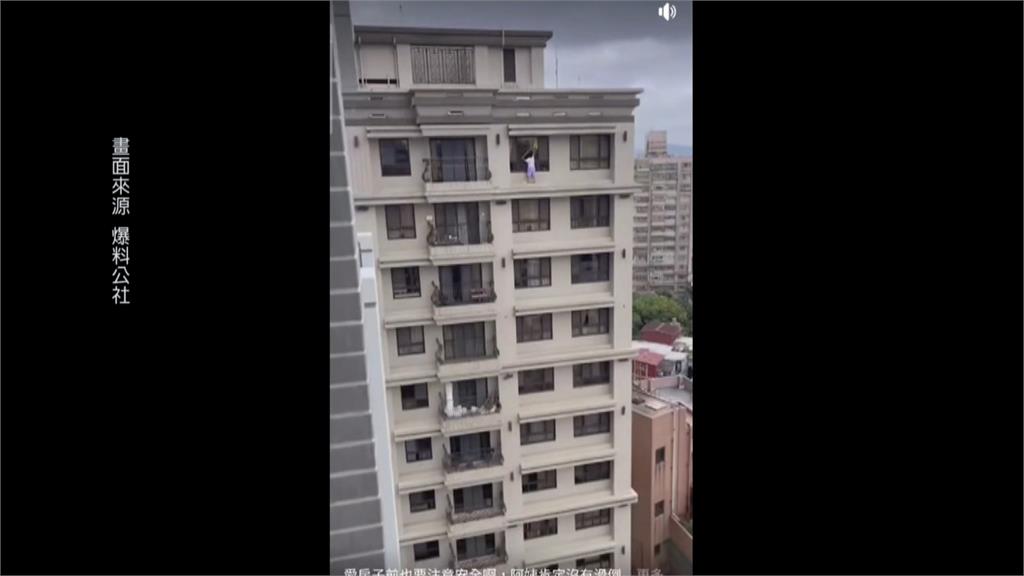 新北市板橋區,這棟社區15樓的住戶,請清潔公司員工幫忙打掃,清潔工從窗戶跨出去,站在小小的外牆上,將近40公尺高的位置,從事清潔工作,被附近住戶拍下來,網友留言直呼,「看到腿都軟了,阿姨真勇敢,要是一個不小心失足跌落,後果可難以想像!」。