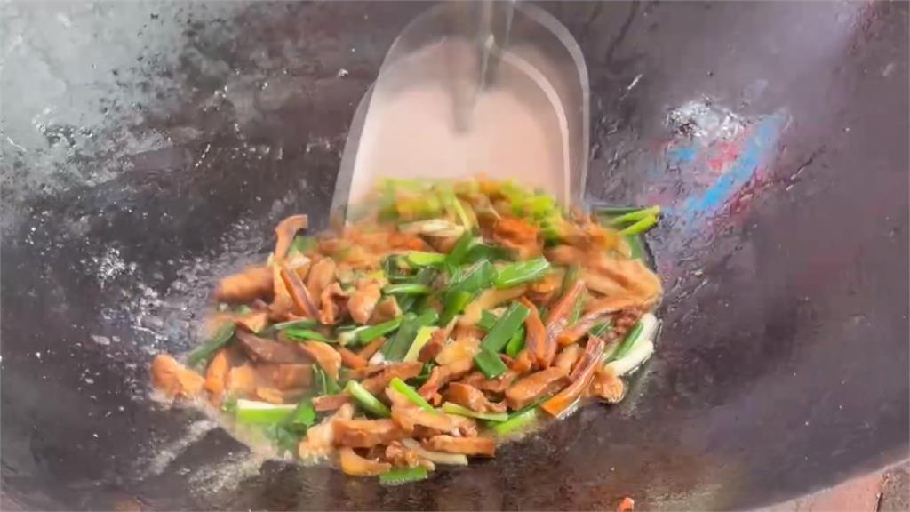 豬肉絲、豆乾和魷魚,客家小炒必備的食材,經過大火快炒,香味瞬間飄散,還有薑絲大腸,一定要加足白醋,才夠酸溜夠味,這些著名的客家料理,經過大廚巧手,一一端上桌,讓評審來評比。