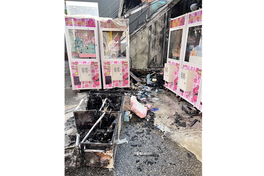 台中市西屯區文華路段,1家「逢甲歡樂星商城」,日前傳出夾娃娃機檯冒出火舌的火警意外。第六警分局表示,轄區西屯派出所員警,當天上午8時許接獲110報案,趕赴現場協助消防人員及台電人員,進行滅火與安全處置,火勢約於上午8時10分撲滅,現場雖無人員傷亡,但有3台夾娃娃機遭燒毀受損。員警調閱周邊監視器畫面,鎖定27歲許姓男子涉案。他則辯稱,當時只是玩打火機,不慎引燃一旁紙箱。