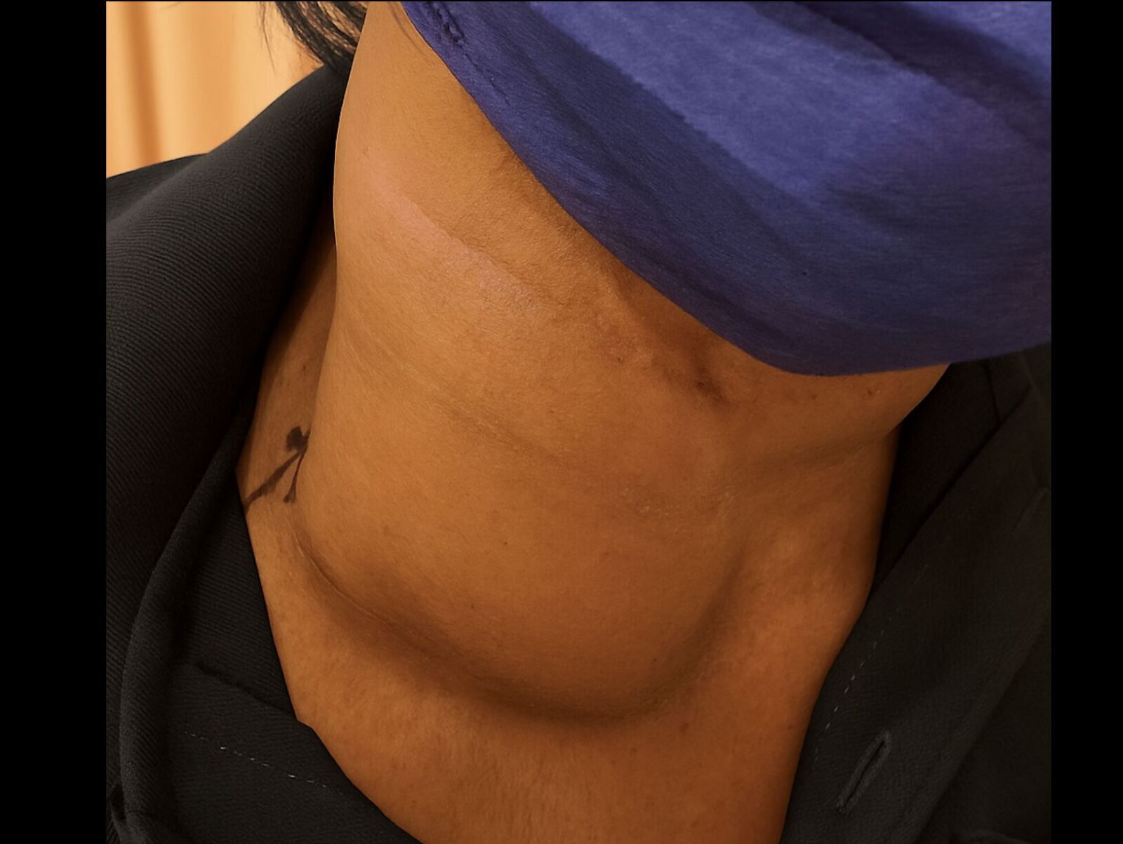 頸部長出「鴕鳥蛋」差點要命!一名68歲的老翁,今年初右頸突然長出一顆小腫塊,初期沒有任何不適,隨後就逐漸變大且合併紅腫熱痛,但他卻沒有積極治療,直到腫塊變形有如「鴕鳥蛋」大小才連忙就醫,經切片檢查證實是「伯基特淋巴瘤」,腫瘤已經逼近氣管僅隔0.1公分有如一線天,還出現多種併發症,所幸經化療後,腫塊逐漸消退,才撿回一命。