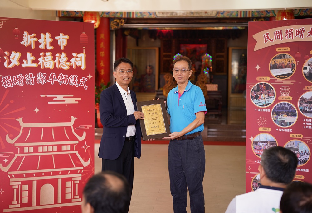 環保局補充,新北市現有逾2100輛清潔車輛,但仍有逾一成車齡超過15年,需汰換更新。近3年已有宮廟、企業與社團捐出14輛車輛,本次福德祠再添第15輛,凸顯公私協力,共同打造更宜居的新北市。
