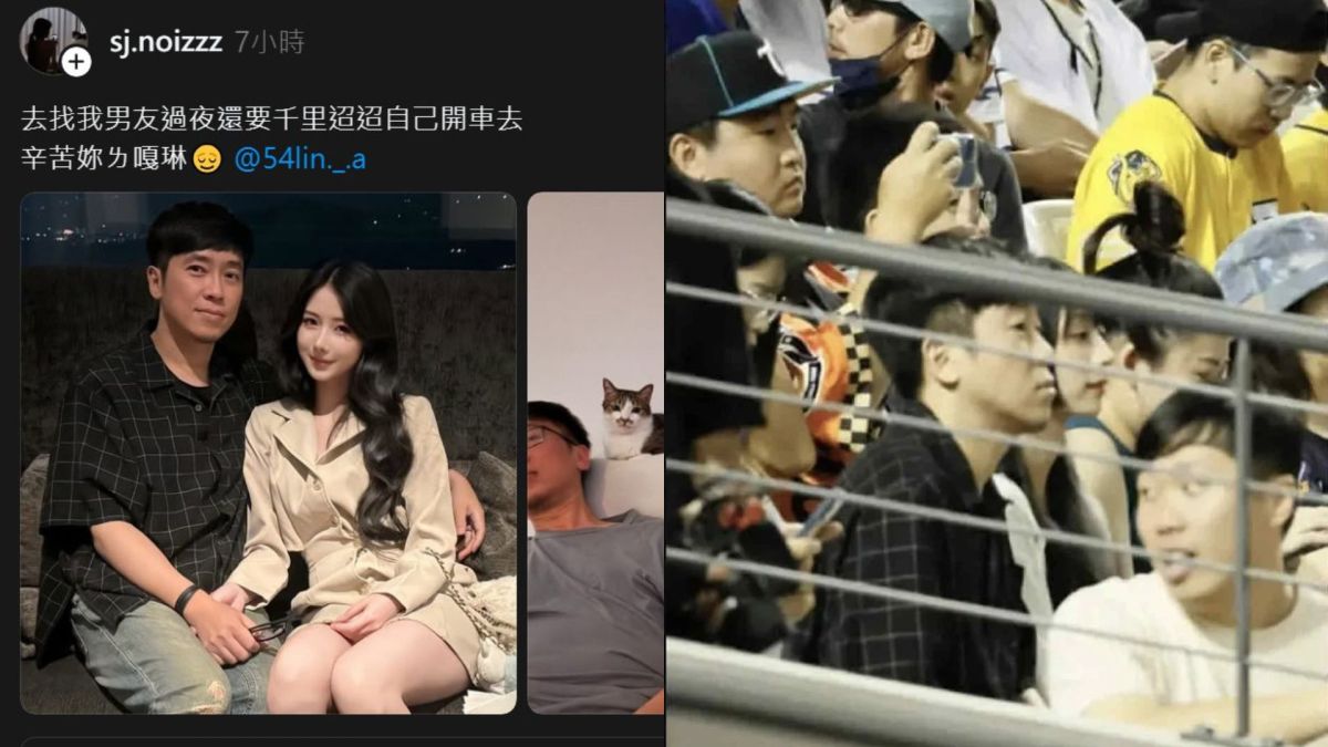 圖/網友爆料,曾在台北大巨蛋目擊她與黃苡峻一同看球,質疑兩人關係並非空穴來風。(翻攝 X、Threads)