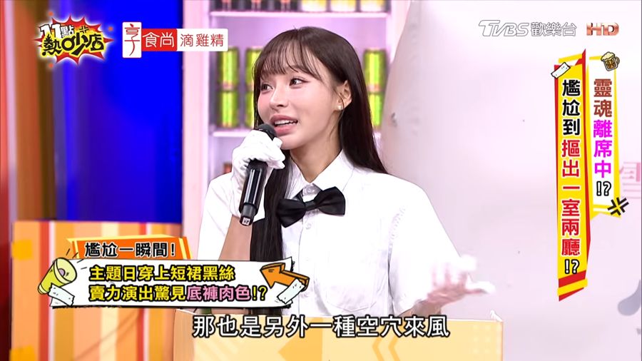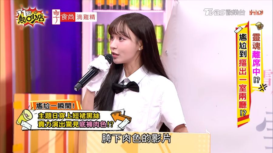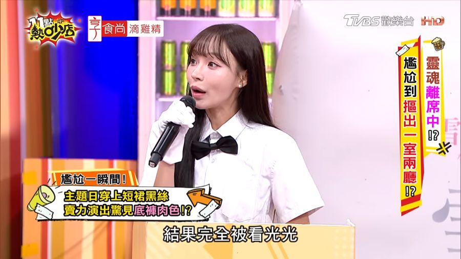 (記者洪承恩/綜合報導)啦啦隊女神林襄近日在節目《11點熱吵店》分享出道初期的超糗經歷,讓全場笑翻也讓她自己直呼「頭皮發麻」。她透露,剛成為樂天女孩時第一次參加「OL主題趴」,大家都穿著黑絲襪上場,但她一時不察買錯款式,竟買成「免脫絲襪」,導致表演時意外走光,畫面還被拍下流傳網路。