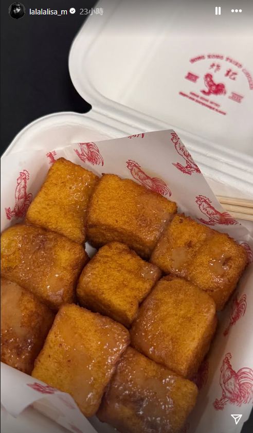 Lisa離開高雄前,在限時動態分享多張演出與旅程照,其中一張外帶盒內的炸物被粉絲比對出來自由香港人所開的「炸記」店家。Lisa貼出的正是淋上特製花生醬的西多士,售價89元,畫面一出即引發討論。眼尖的粉絲留言:「我要吃同款!」、「Lisa說讚就讚!」、「老闆準備忙到手軟啦!」