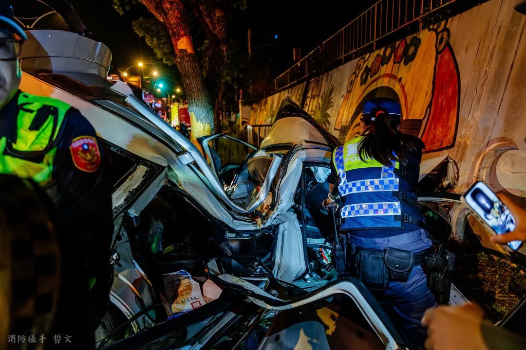 警方表示,羅女駕車時疑似因酒後精神不濟、判斷失準,導致車輛偏離車道後撞上路旁樹木。透過後方車輛行車紀錄器畫面可見,該車當時沿台9線由北往南行駛,在切換車道時突然失控偏移,瞬間撞上路樹,撞擊力道猛烈,車頭幾乎成V字型。