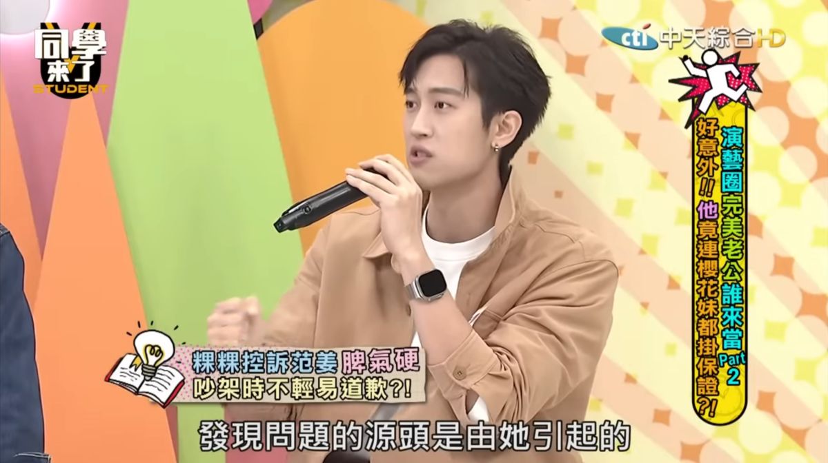 范姜彥豐則當場回應,坦言這確實是過去的自己。他表示,早期的他個性偏理性、凡事講究對錯,吵架時總想「找出問題源頭」,認為只要自己沒錯就不用道歉,「以前我就覺得,問題在哪裡就要查清楚,如果最後發現是她引起的,我就覺得我沒錯、就不道歉。」