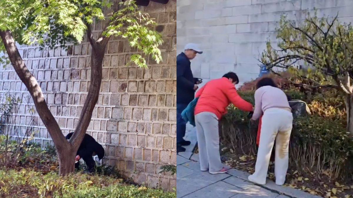 (記者許皓庭/綜合報導)首爾代表性古蹟景福宮近日出現離譜行徑,兩名疑似中國籍的遊客竟在石牆邊直接蹲下如廁,畫面被現場民眾拍下後在韓國網路迅速傳開,引發強烈批評。相關影像顯示,兩人在大批旅客往來的熱門景點旁排泄,警方巡邏時也曾上前制止,事件持續延燒。