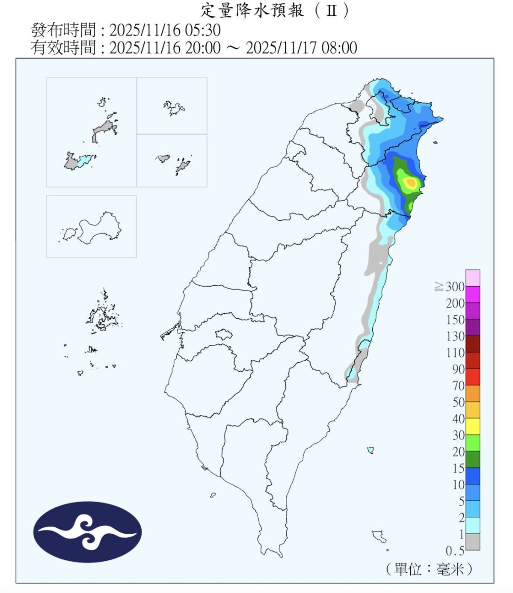 最新溫度預測顯示,週二、週三中部以北及宜蘭低溫約落在 15 至 16 度,花東、南部及澎湖則在 18 至 20 度之間。白天高溫方面,北部與宜蘭預估僅 18 至 20 度,中南部及花東則維持在 22 至 29 度。