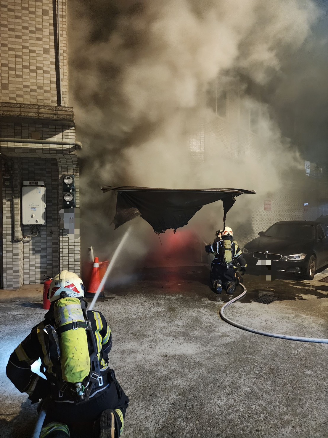 桃園市楊梅區文化街218巷一處五層樓民宅,昨日晚間9時22分許驚傳火警。圖:讀者提供