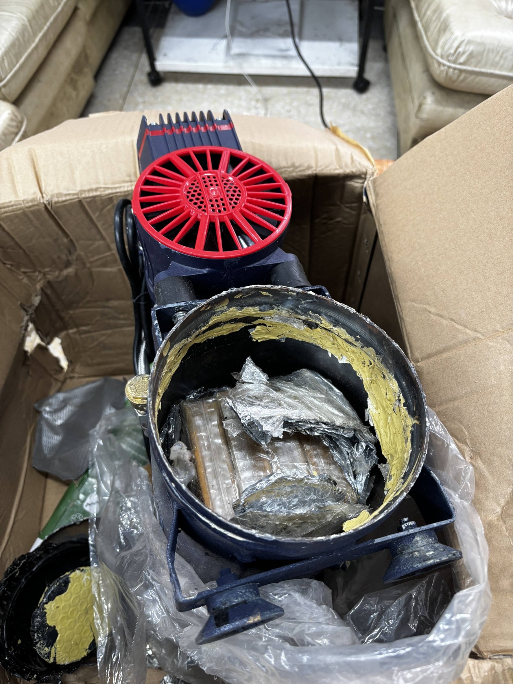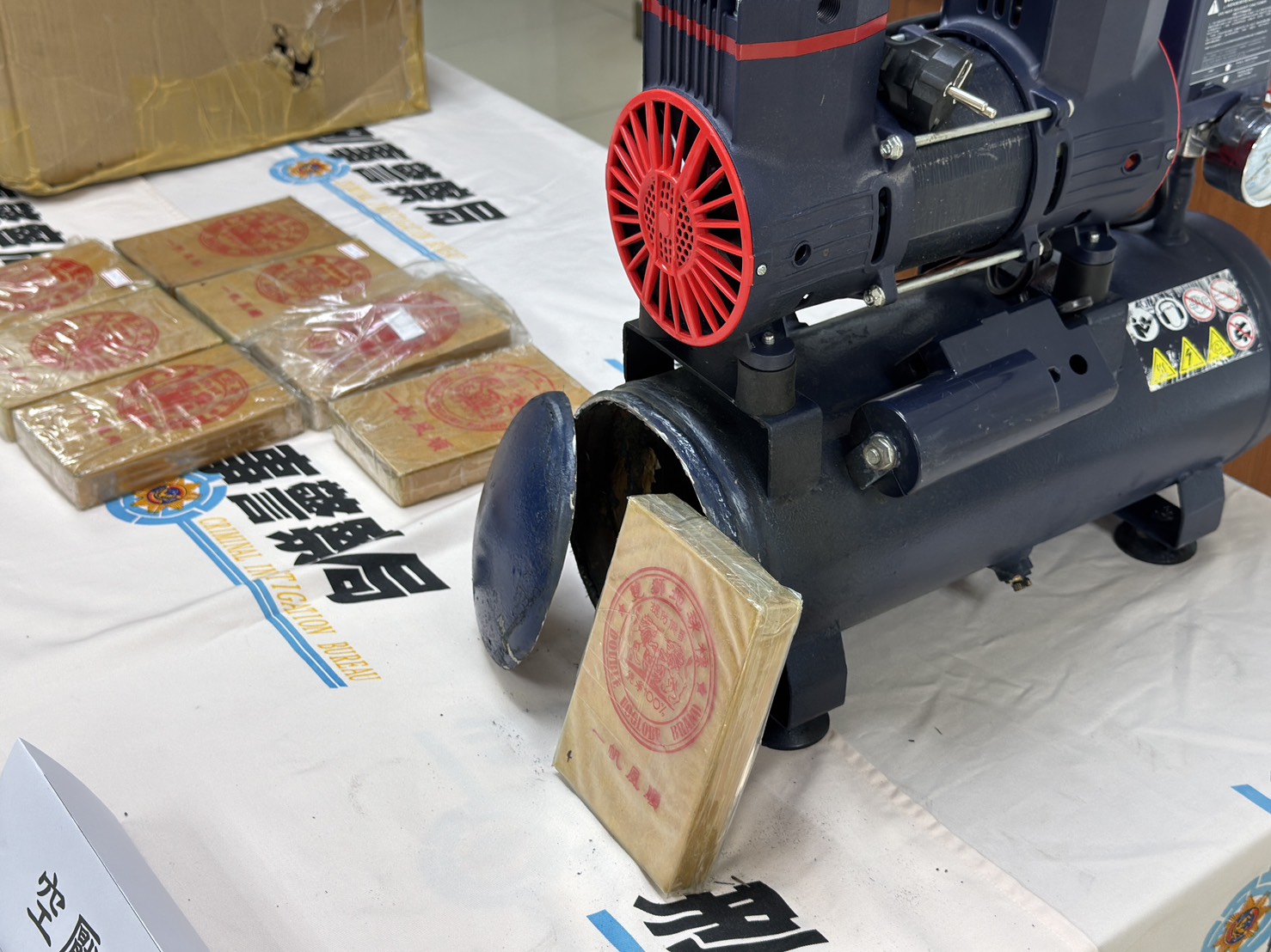 刑事局南打是在2025年5月接獲通報,發現一批從泰國寄往台灣的空壓機包裹疑似藏毒,與高市警刑大共組專案小組,報請高雄地檢署指揮。由於空壓機具有厚重的金屬外殼,運毒集團顯然是想藉此規避機場X光機掃描,增加查緝難度。