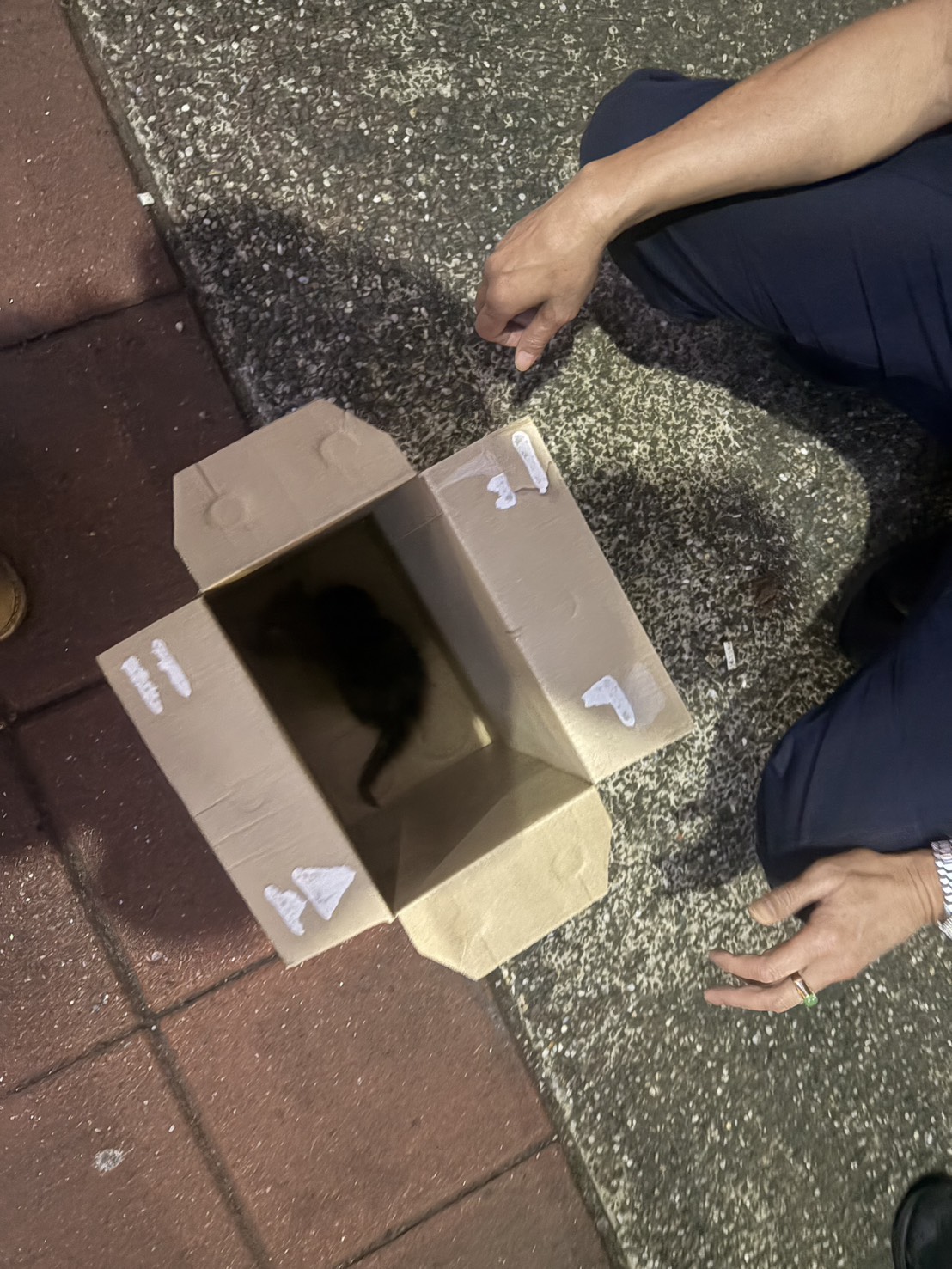 警方趕抵現場後,細心確認聲音來源,隨即偕同車主開啟引擎蓋展開即刻援救。經過一番努力,警方在狹窄的引擎室發現貓咪,於是小心翼翼地將其救出,結果是一隻身形瘦小、連眼睛都還沒睜開的新生幼貓,於是先帶回派出所安置。