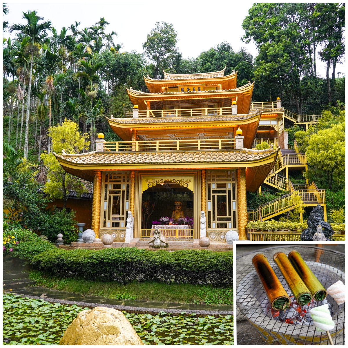 ↑圖說:前往瑞里途中可順道參觀金碧輝煌的「龍王金殿」,並預約體驗特色竹筒烤茶,為旅程增添趣味。(圖片來源:嘉義縣文觀局提供)